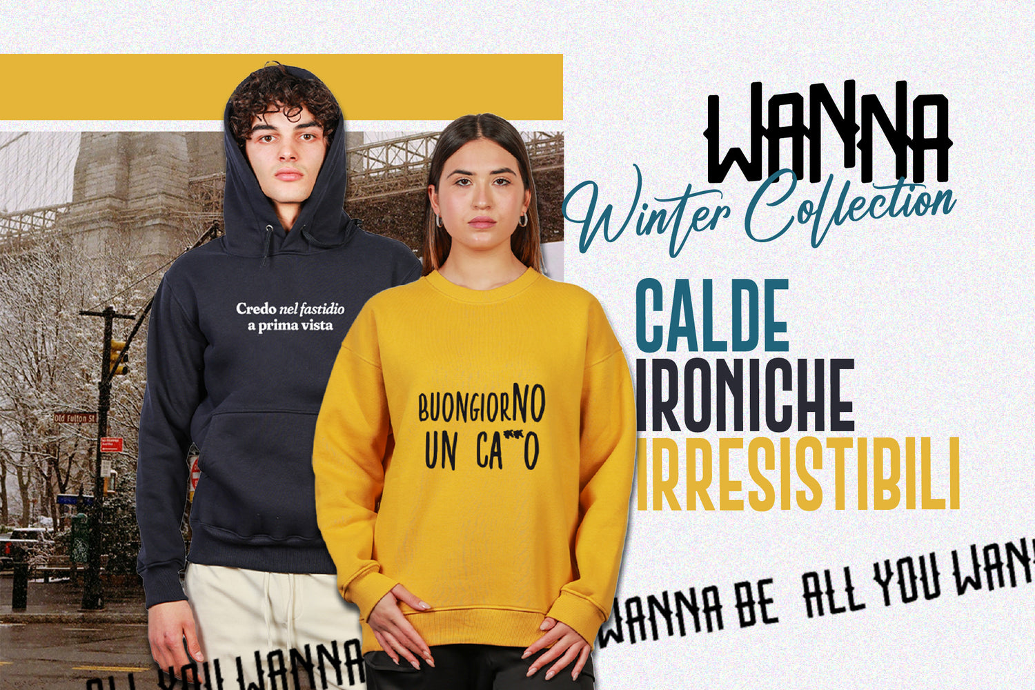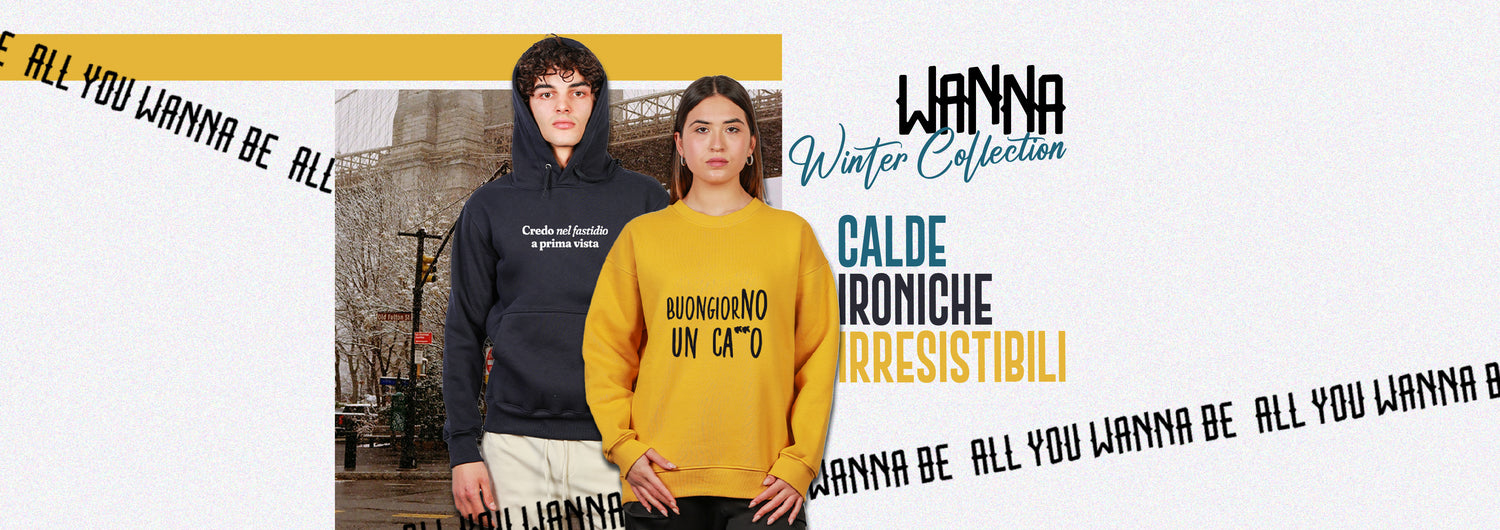 Wanna è il brand di chi ama vestirsi con ironia, stile e zero filtri. T-shirt e felpe con stampe bold, irriverenti e 100% Made in Italy. Perché la moda è espressione… e noi abbiamo molto da dire!